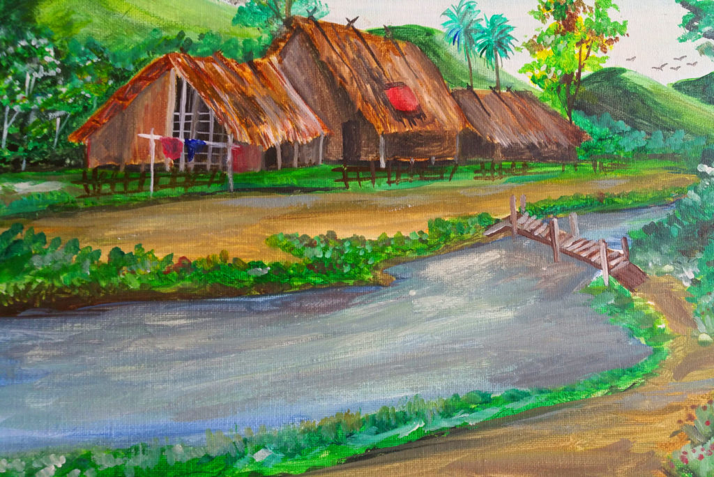 A Burmese village by artist Hay Reh, 22, depicts life before coming to America.