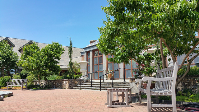 Inspired by their first date in the Orangerie and its inscription, David says the dedication plaque wrote itself, “This tree and its nearby companion are dedicated to a husband and wife who, on Valentine’s Day in 2004, fell in love in the Orangerie. LAETITIA AETERNA — JOY EVERLASTING!”