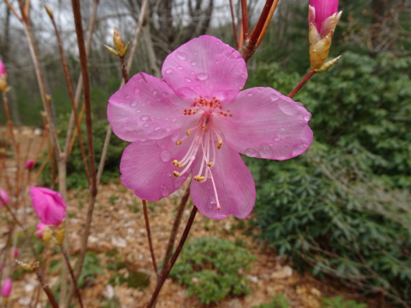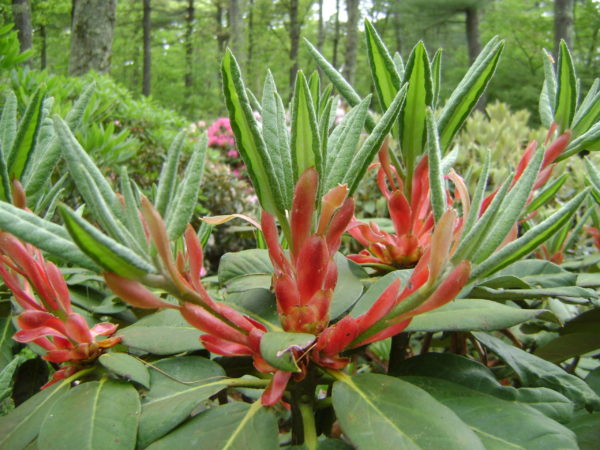 The genus Rhododendron is very diverse, containing over 800 species and many subspecies. Over 100 species can be grown in central Massachusetts. Species range from rock hardy natives, to exotic tropical types suitable for a greenhouse in our area. Hybridizers have produced hybrids in every size and color imaginable. With this number of plants to choose from you can never learn everything or get bored!