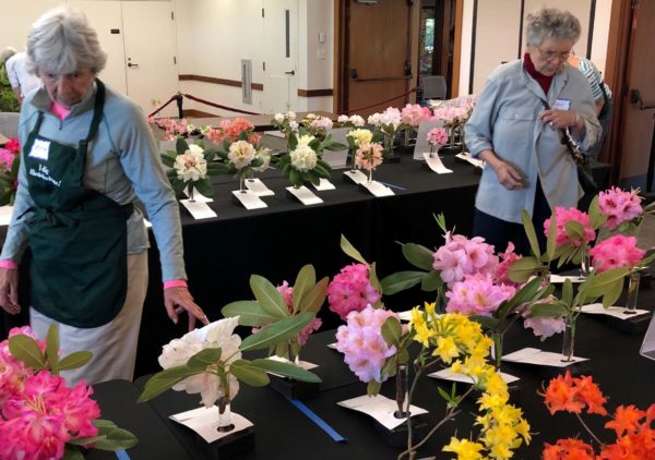 The Massachusetts Chapter has been holding a Show and Sale for several decades. Throughout the event, we are working to educate visitors, exhibitors, and members. Several very knowledgeable rhododendron growers are always available to answer questions, including addressing problems. The show generally consists of two primary features: