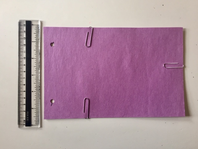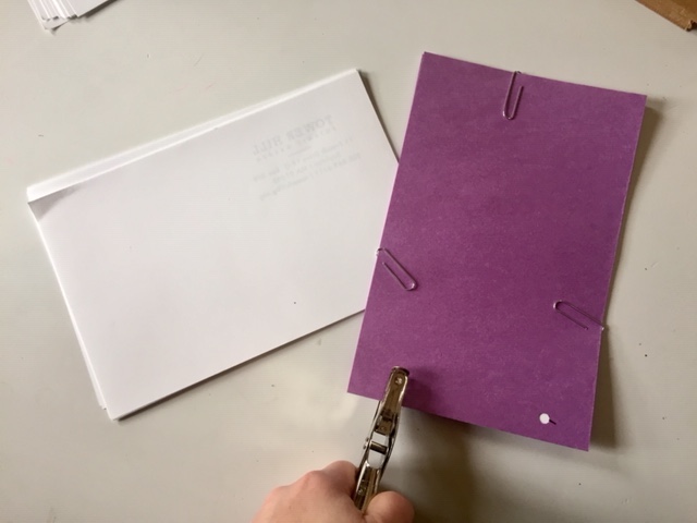 Add your filler pages in between your cover pages, two pieces at a time. Punch holes in each of your filler pages using the holes in your cover pages as a guide. Repeat with as many filler pages as you would like to fill the inside if your journal. Stack all your pages in between your cover pages, line up the holes, and replace the paperclips to secure together.