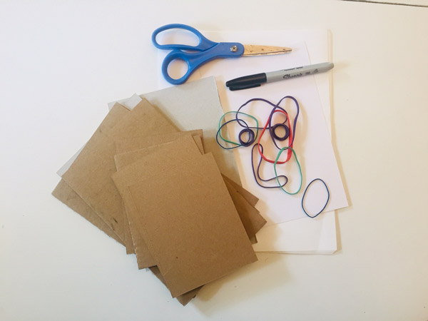 Keeping all your layers stacked, carefully wrap two rubber bands around all the layers in both directions.