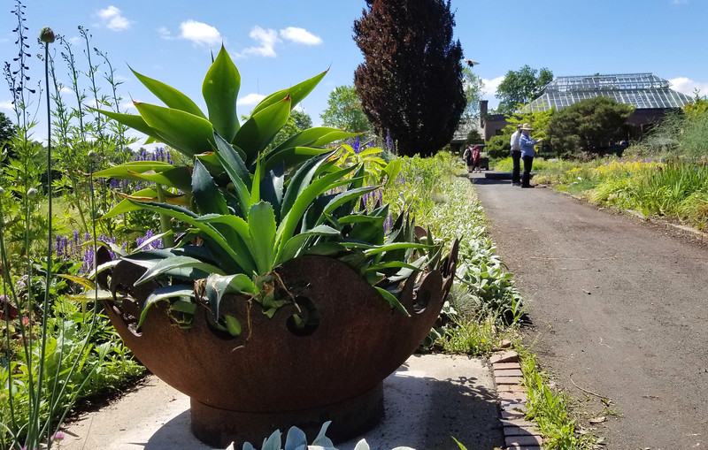 Returning visitors may recognize the planters used to hold succulents as repurposed fire pits from our annual Night Lights celebration.
