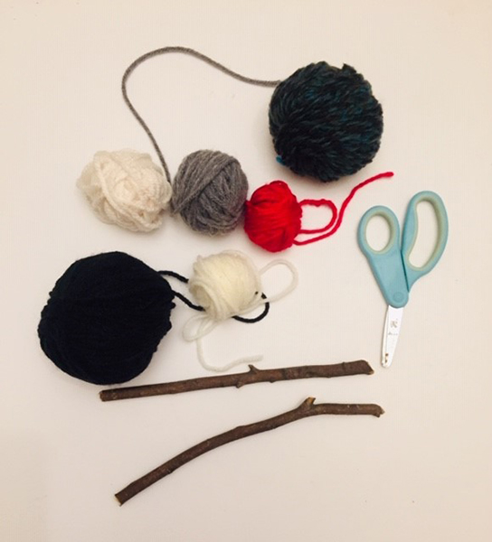 Put on your finishing touches by wrapping the ends of your sticks with yarn, adding beads, or pom poms. Hang your finished creations indoors or out and bring a splash of color to your neighborhood.