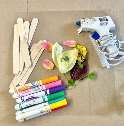 With longer days finally here, there is a lot of sunshine to catch inside our homes. Head outside to pick your favorite leaves, petals, and any other flat item you can find in your backyard, a park, or on a trail. Remember to leave no trace and collect only plants or interesting leaves you find on the ground or pick from your own garden with an adult’s permission. Discuss the different colors, shapes, and look of the natural materials that you collect. Take some time to appreciate all the wonderful plants that can be found in nature.