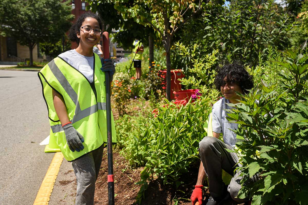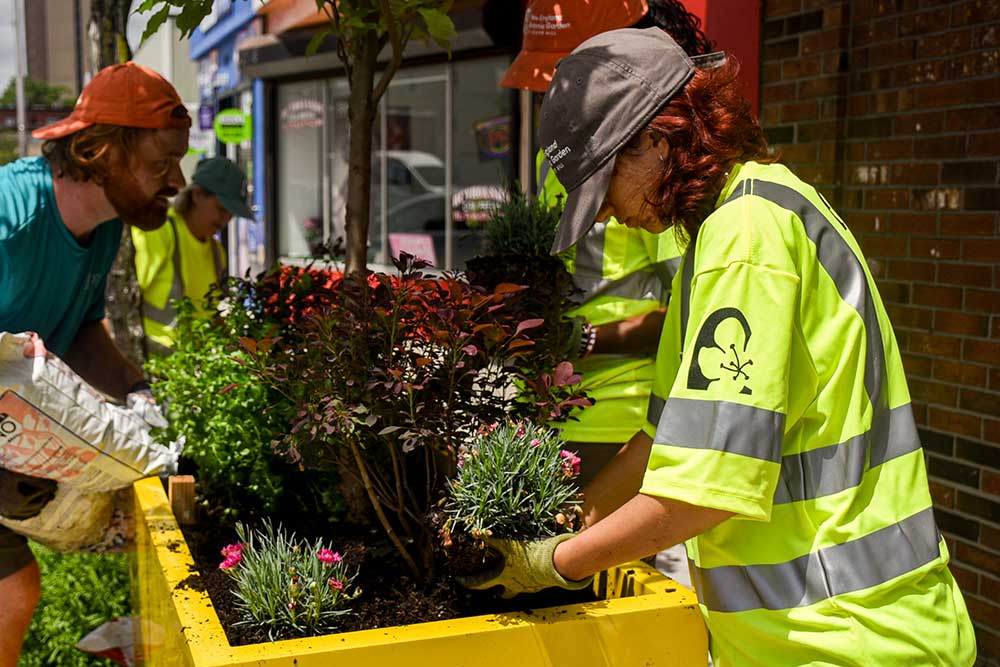 Access to green space is essential for a healthy community. Beautifying with trees, shrubs, and planters also instills a sense of neighborhood pride. But beyond serving our mental and physical wellbeing, greening supports the urban ecosystem and can help make cities more resilient in the face of a changing climate by combating urban heat island effect, mitigating stormwater, fostering biodiversity, and supporting pollinator populations.